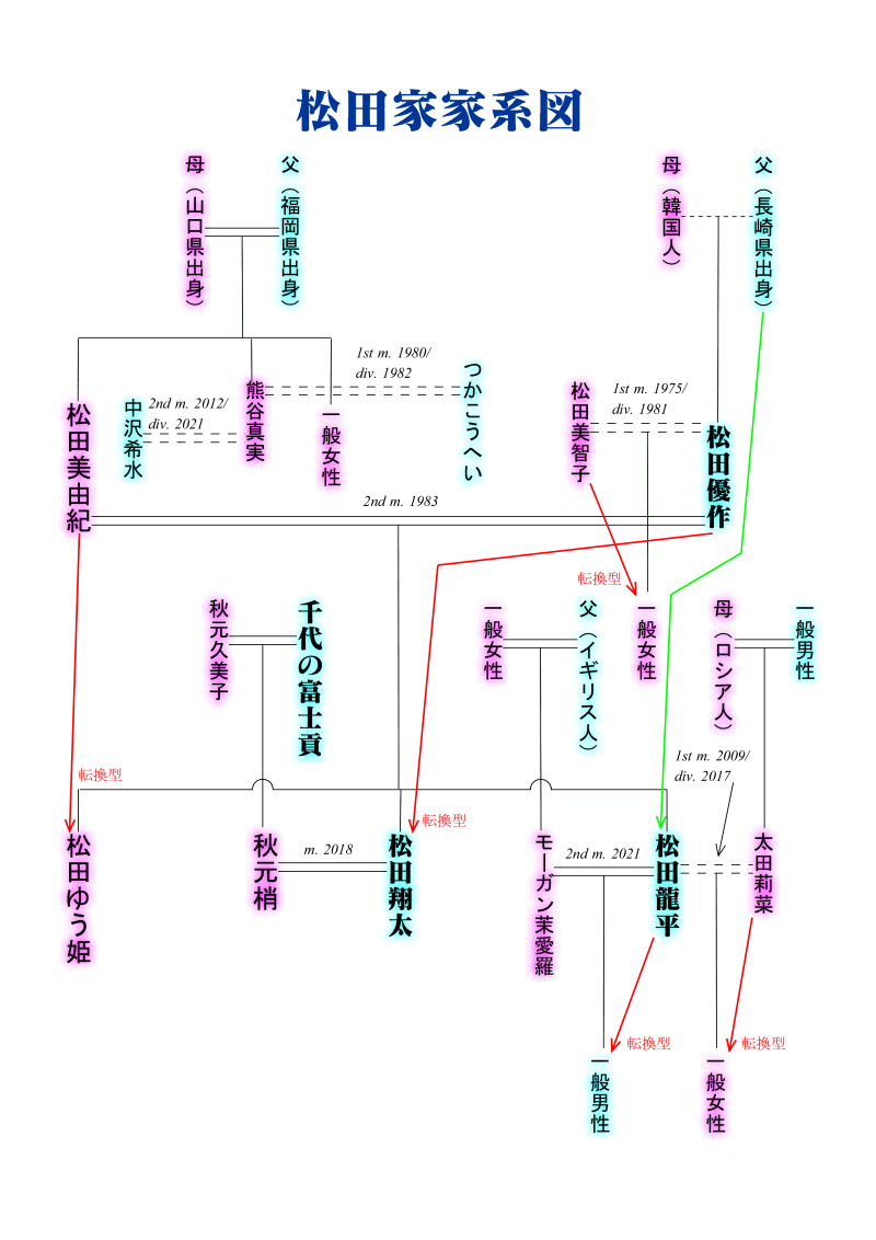 次女・美由紀の長女:松田ゆう姫・・・歌手、元タレント、Young Juvenile Youthのボーカル、ソングライティング担当