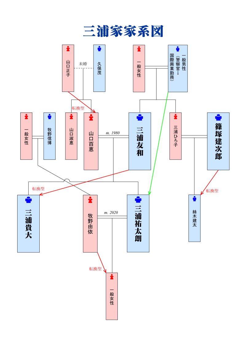 長男:高嶋道夫・・・1964年の生後5ヶ月の時、当時の家政婦によって風呂桶に沈められて殺害された→縦横の法則の対象外