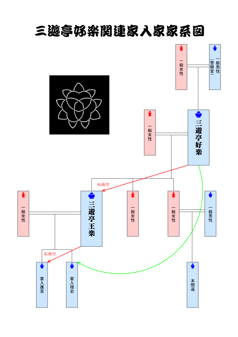 三遊亭好楽関連家入家の縦横の法則と三親血縁の法則 未選択 2021年07月06日 『笑点』の大喜利メンバーでおなじみの三遊亭好楽師匠に関連する家入家の縦横の法則と三親血縁の法則です。 画像を拡大 三遊亭好楽・・・落語家、五代目円楽一門会顧問、本名:家入信夫、旧芸名:林家九蔵、8人兄弟の6番目となる四男 父親は警察官で6歳の時に40代で死去 父のマネージャーである長女と孫で長女の長男となるテレビ出演者の本間遥、小売業経営者の次女、長男の三遊亭王楽がいる 天干・・・壬 地支・・・子 → 一般女性(配偶者) 最も影響を与えている先祖 → 父の母の母の曽祖母 人生の鍵を握る先祖 → 母の父の祖父 長男:三遊亭王楽・・・落語家、本名:家入一夫 長男の理史、次男の康至がいる 天干・・・戊 地支・・・辰 → 一般女性(配偶者) 縦横の法則 → 三遊亭好楽(転換型) 最も影響を与えている先祖 → 三遊亭好楽の母の父の曽祖父 人生の鍵を握る先祖 → 母の母の祖母 好楽の長男である王楽の「芸歴20周年記念独演会 7days」で長男の理史君と次男の康至君が親子3代競演で落語デビューし、終演後のコメントの内容で縦横の法則で好楽となる理史君は終始笑顔を見せ、王楽の転換型となる康至君は堂々と宣言しているところがそれぞれ特徴が現れています。