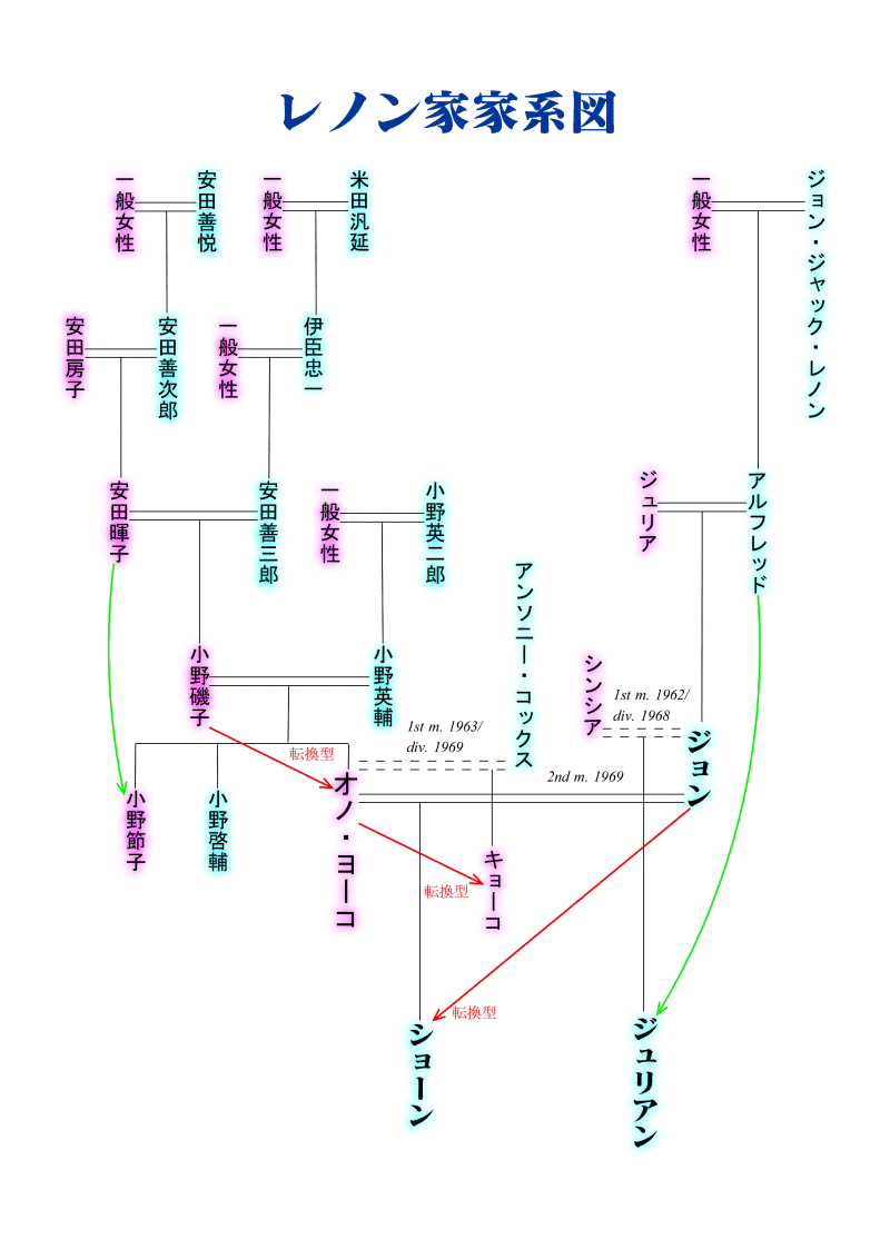 ジョン・レノン関連レノン家の縦横の法則と三親血縁の法則