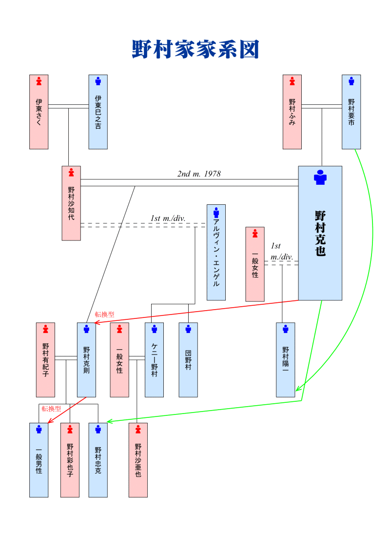 地支・・・子 → 一般女性(前妻)、野村沙知代(配偶者)