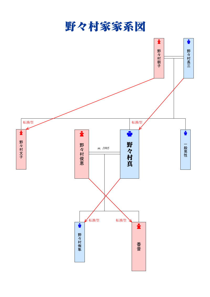 『笑っていいとも!』の初代いいとも青年隊のメンバーとしてデビューし、夫婦共演でのテレビ出演で恐妻家タレントとしても知られる野々村真さんに関連する野々村家の縦横の法則と三親血縁の法則です。