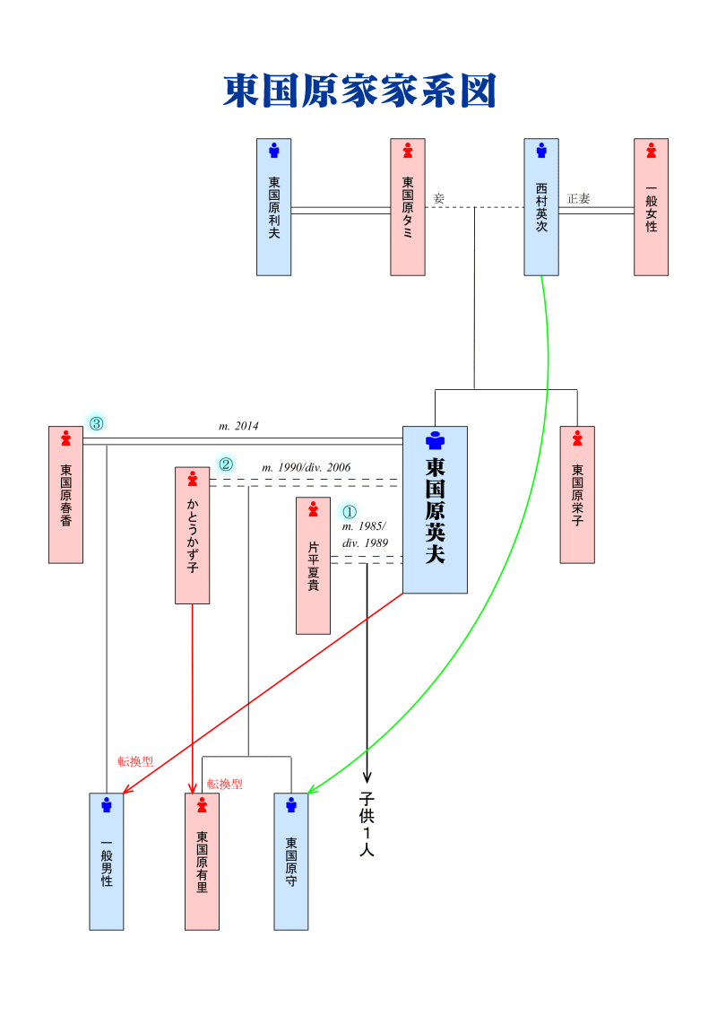 ビートたけしの弟子で、そのまんま東の芸名を名乗ってたけし軍団のメンバーとして活躍した後、宮崎県知事や衆議院議員としても活躍した東国原英夫さんに関連する東国原家の縦横の法則と三親血縁の法則です。